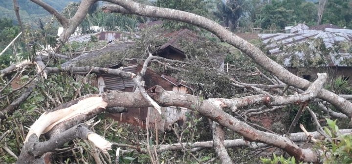 Ruteng, Beritaflores.com – Dua unit rumah permanen warga kampung Laci, Desa Golo, Kecamatan Cibal, Kabupaten Manggarai, NTT, rusak berat akibat tertimpa pohon tumbang.