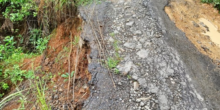 Kadar air dalam tanah yang dimungkinkan berlebihan membuat tekstur tanah melembek sehingga terjadi longsor yang mengikis area tepi jalan.
