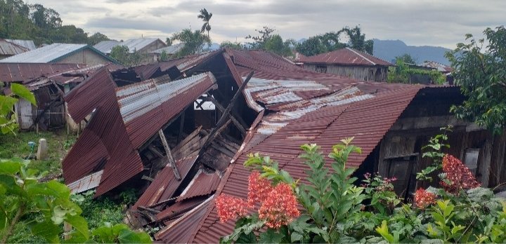 “Roboh karena angin kencang kemarin, terjadi sekitar pukul 14.30 wita”, kata Tito, warga kampung tersebut, Sabtu.