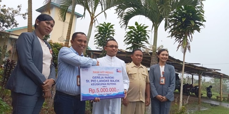 Bantuan ini diserahkan langsung oleh Pimpinan Cabang Bank NTT Ruteng, Romi Radjalangu dan diterima oleh RD Handry Masri sepaku pastor paroki St.Pio Langke Majok, kecamatan Satar Mese Utara.
