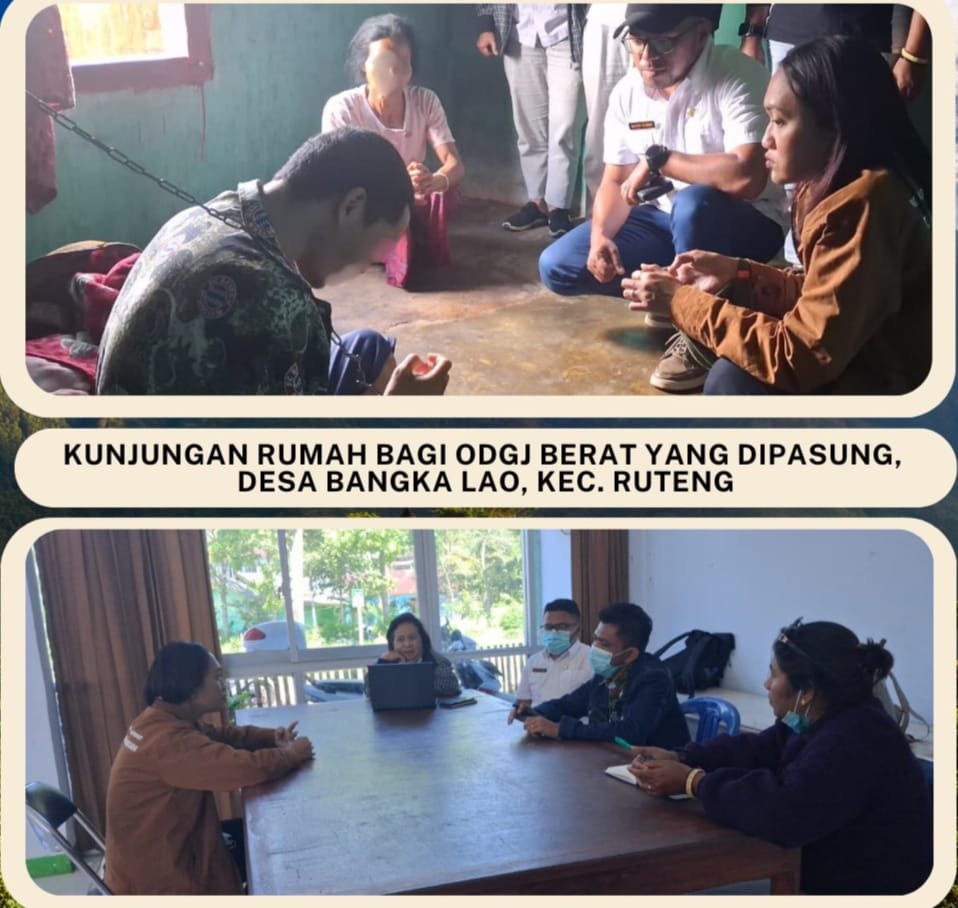 Didampingi oleh Kepala Desa Bangka La’o, Yohanes Santo, pihak P2P berkunjung ke rumah salah satu OGDJ berat dalam kondisi pemasungan di Desa Pong La’o, Kecamatan Ruteng.