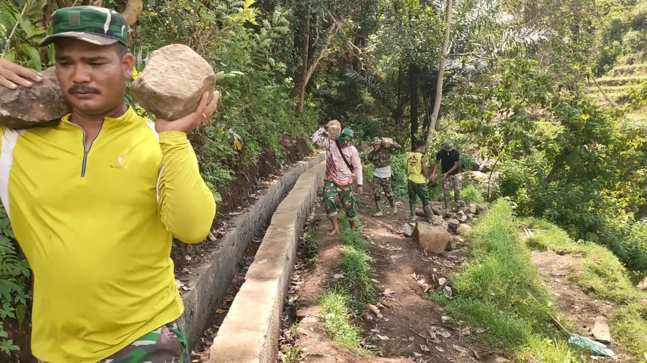 Pada hari ini, Sabtu (25/10), personel TNI bersama ratusan warga Desa Pinggang bahu-membahu mempercepat pembangunan proyek vital yakni Saluran Irigasi Wae Lenteng.