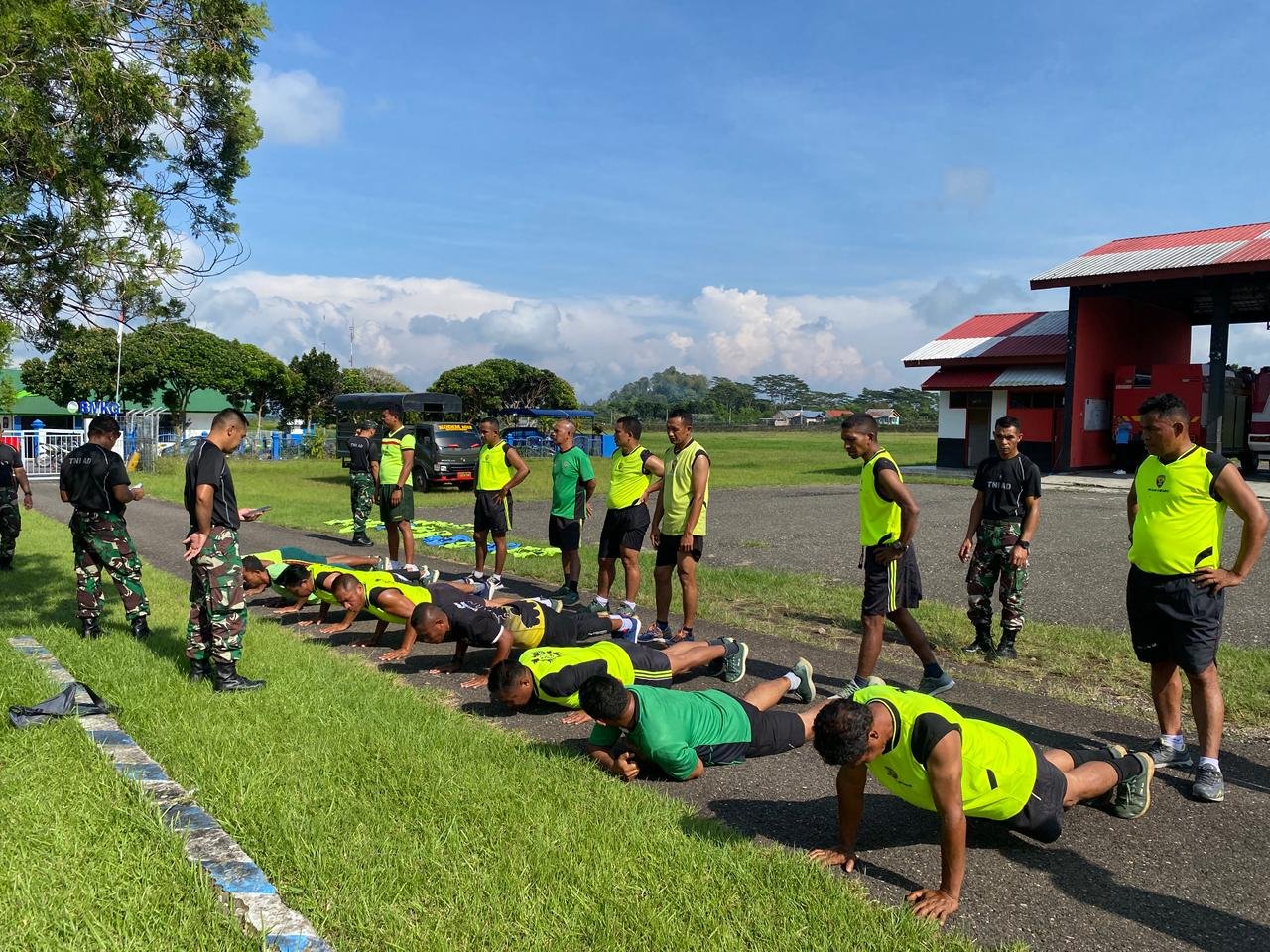 Personi Kodim 1612 Manggarai saat Menjalani Latihan Fisik di Area Bandar Udara Frans Sales Lega Ruteng - Foto: Ist