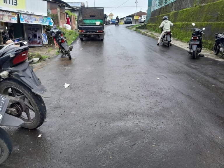 Aspal hitam mengkilap terbentang rapi usai di hotmix membuat jalan jelas terbaca. Kendati, roda kendaraan pun berputar lebih mulus tanpa hentakan.