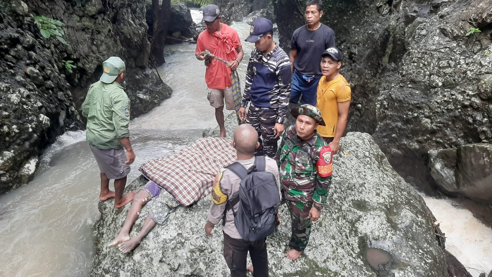 Dijelaskan IPDA Joko, saat ditemukan korban dalam keadaan meninggal dunia dan dalam posisi tersangkut pada bebatuan dan batang kayu yang melintang di sungai.