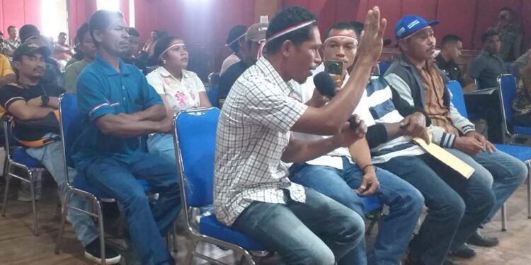 Ketegangan memuncak saat massa melakukan audiensi dengan Penjabat (Pj) Sekretaris Daerah Kabupaten Manggarai, Lambertus Paput.