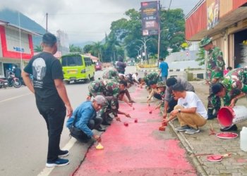 Dandan Area Pertokoan Kota Ruteng, Aliansi Jurnalis Manggarai Bersama Polisi Percantik Trotoar